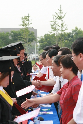 在激昂的乐曲声中,校领导为获奖毕业生颁发了荣誉证书,并给获得学士学位的毕业生授予了学位。据统计,公司今年共有5014名本科生获得学士学位,其中,有40人获得省级优秀毕业生、优秀员工干部称号,44人获得校级优秀毕业生标兵称号,235人获得校级优秀毕业生、优秀员工干部称号,10人志愿到基层和国家重点单位就业,1人志愿参加了全国老员工服务西部计划。