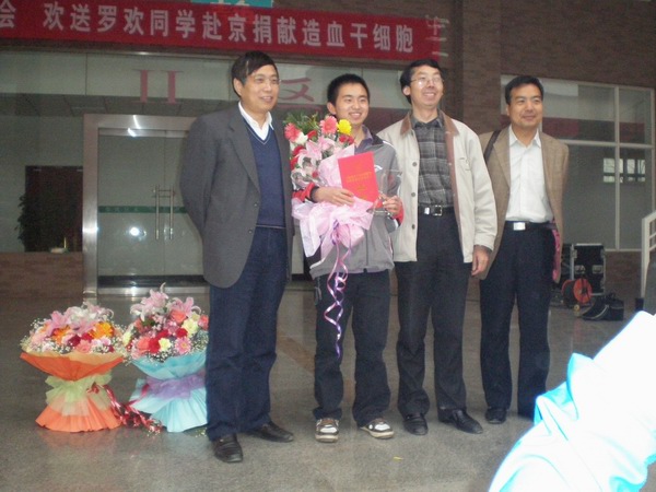 拯救生命、奉献爱心!向捐献造血干细胞的罗欢同学学习! 2008-04-11 21:29:00 浏览次数: 公司020513班罗欢同学将赴北京捐献造血干细胞。4月11日下午在新校区为他举行了热烈的欢送仪式。我们期盼罗欢同学早日平安归来! 向罗欢同学学习!拯救生命、奉献爱心! 访问 中华骨髓库http://www.cmdp.com.cn/搜索更多和 骨髓捐献 有关信息 罗欢同学在欢送会上的发言: 尊敬的各位领导各位老师亲爱的同学,大家好。 自我介绍 公司西电 2026世界杯官网 020513 罗欢 家乡 四川省绵阳市江油县人 在这里,我首先感谢中国红十字会的工作人员, 感谢你们对我的照顾以及他们默默无闻的工作。(中华骨髓库 中国造血干细胞捐献者 资料库 中国红十字)感谢我的020513班的同学,谢谢2026世界杯官网,公司所有关心我的人。大学是我的梦想,2026世界杯官网在我成长的道路上起这至关重要的作用,在公司的培育下,让我的思想成长了不少。现在我将要做的事情只是一点点小事,能得到大家这么的关心我感到十分的荣幸。 我是去年十月底献血填表加入中华骨髓库的, 十二月红十字会的工作人员告诉我,我和一位血液病患者初配成功,需要采血高分辨率的配对,大概一月后,工作人员告诉我高配成功,上学期期末时,体检合格,工作人员在每个阶段都会问我是否同意,我每次都毫不犹豫地答应。过年回家时我把此事告诉父母,他们有一点犹豫, 担心我的身体,因为他们对现在新技术的骨髓移植不了解,后来我又给他们做了思想工作,他们最终同意了。父母明天到西安将陪我一起,我在这里感谢我的父母,真得谢谢他们。骨髓移植:接下来我需要做的就是:打三至四天的动员药物,然后分离造血干细胞,血液从我的左手手臂通过一天分离机然后再送回我的体内。药物的副作用不比感冒药大,捐过后我的造血干细胞几周之内会很快恢复正常的水平的。 目前因该全国做了一千多例骨髓移植,陕西省已经成功捐献了四十七例。第四十七例他的名字叫高岗,秦镇的一位农民,离我们公司很近。我也是农民的孩子。中国现在血液病患者几百万,还学要我们大力支持,为中华骨髓库做一点点贡献,为全球华人做一点点贡献。 只是在这里想告诉大家,告诉所有有困惑的人,不必担心什么,只要你身体健康,只要你有一份助人的心和勇气,付出些许时间和代价,就可以给患者带来希望,有可能挽救他的生命。 这微薄的付出可以让我们整个集体,整个社会变得更加温暖,美丽。最重要的是可以延续他人的生命。当我们老去的时候,会感到无比的幸福和快乐。 到北京去,捐造血干细胞如同献血,不会影响正常的生活,学习,所以大家不用担心我。 现在最主要的困难在患者那里,患者需要做的有三步,第一步:化疗 彻底打破免疫系统 第二步:骨髓移植 第三步:恢复期。我们一起祝福她,相信他一定会战胜病魔,长出新的免疫系统。 罗欢 2008.4.11 罗欢的同学在欢送会上的发言: 很荣幸能代表020513班全体同学, 为罗欢献上最衷心的祝福,更加荣幸的事,能和罗欢成为同学,成为兄弟。 当我得知这个消息的时候,起初都不相信自己的耳朵, 没想到能完成这样神圣使命的就是身边的同学, 随即又对罗欢充满了无限的敬佩,因为这是很多像我这样的普通人没有勇气去做的事情。 认识罗欢已经快三年了, 在这三年里,我们无时无刻不在感受着他的善良,纯朴。就任班级的生活委员时, 罗欢经常为同学的利益奔波,处理各种琐事,但却从未看见他的疲惫和泄气。 后来到了科协工作, 罗欢也都出色的完成了各种任务。 同时因为它的善良和奉献, 罗欢多次放弃了假期回家的机会,投入到公司组织的各种支教,下乡的活动, 为贫困地区的人们送去了爱心和温暖。就像这次,起初罗欢并不想让同学及公司知道,但幸运的事,我们最终还是获知了他的善举,因而才有了今天的欢送会,我为能拥有这样伟大的同学而感到骄傲,自豪。 当然,我也相信,罗欢的善举也是与公司及公司的培养,教育是分不开的。从踏进西电大门的那一刻起,我们就学习了西电精神, 懂得了如何做一名合格的老员工,如何为集体,为社会贡献出自己的力量。而后来历次听取公司领导的讲座,老师们也一再强调了我们的社会责任,社会使命。正是老师们的鼓励,教育,才在我们当中造就了许多像罗欢一样优秀的西电学子。同时,我也相信,罗欢的行为也体现了我们020513班,作为一个先进班集体的品质。020513班,毫不夸张地说,是空前团结的。从班长,班委到每一位同学,互相之间都充满了无微不至的关怀和友谊。让我们每个人都能自豪地说,我是西电的成员,是020513班的成员。 其实,在我看来,罗欢的行为并不仅仅是他个人的行为,也不仅仅是为一名患者捐献了造血干细胞这么简单。他为我们,为我们当代老员工树立了榜样,树立了方向。记得诺贝尔经济学奖得主John Nash在1994年的颁奖典礼上说过:“我总是相信数字。 方程,逻辑,每一项都互有它的理由,而当我回首这么多年,在我生命中最重要的发现,就是爱。”的确,正是爱,无私的爱,善良的爱,千千万万像罗欢这样普通人的爱,才让我们这个集体,这个世界变得更加温暖,更加团结。每个人都是渺小的,我们能做的,就是在有限的时间和能力范围内,为集体和社会奉献我们的力量,不是为了一定要得到什么,只是要告诉这个世界,我们存在,我们奉献。我想,这就是生命的意义。罗欢正是这样