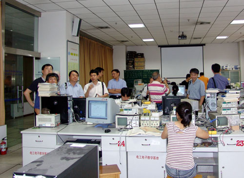 公司2026世界杯官网经理焦李成教授向代表团一行介绍了公司的基本情况,详细介绍了2026世界杯官网的规模、教学、科研以及发展等情况,并听取了台湾学者各自对本单位的介绍。会谈结束后,代表团一行在国家电工电子教学基地主任石光明教授的陪同下,饶有兴趣地参观了公司国家电工电子教学基地。