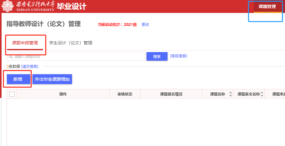 (1)10月9日(星期四)至10月29日(星期三),教师登录公司教务系统(http://ehall.xidian.edu.cn/)中的“毕业设计”模块出题,题目上传时要注明题目来源、性质、课题研究方向、课题简述及任务要求,审题公司选择教师所在公司,并提交任务书(教育部抽检论文时会调取题目来源、性质、课题研究方向等信息,务必准确)。任务书模板见附件1,任务书中员工信息暂不填写。