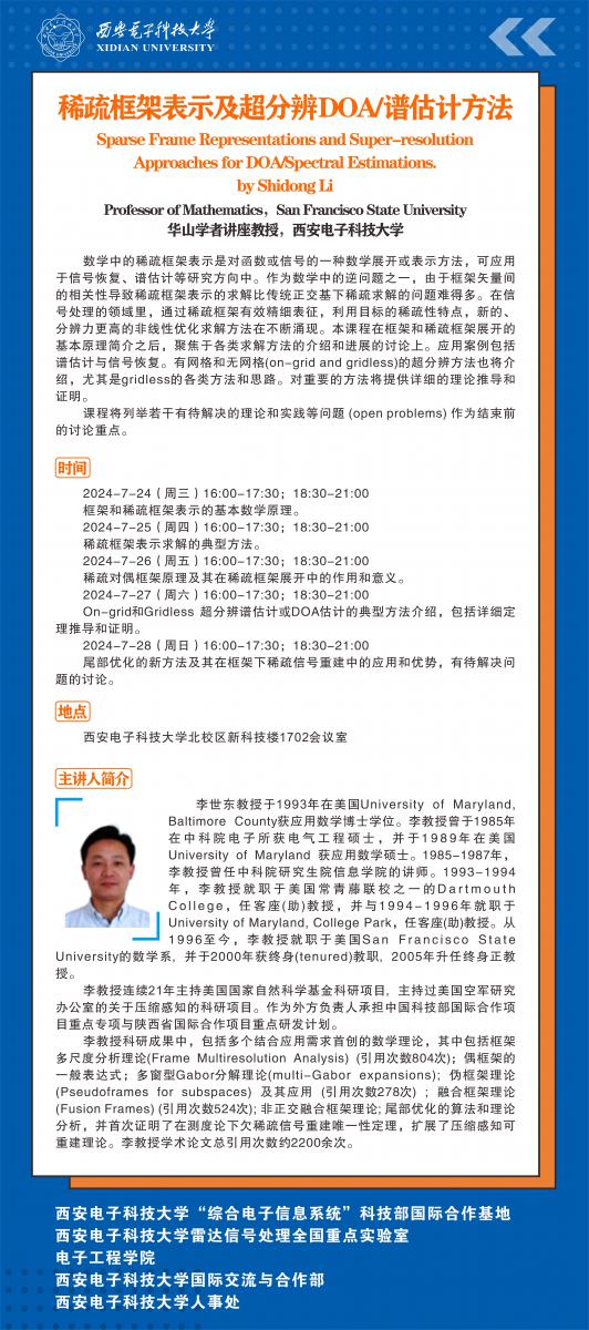 华山学者讲座教授李世东‖稀疏框架报告会 2024-07-10 15:41:00 浏览次数: 责任编辑:王洁 上一篇文章:2023年度第二批2026世界杯官网昆山创新研究院产学研基金拟立项候选项目公示 下一篇文章:关于毛浩超同志的考察预告