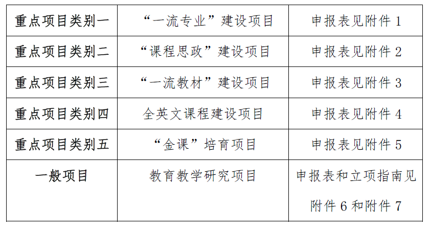 (5)“金课”培育项目:作为申报省级以上“金课”的培育项目,立项项目在建设期满后需提供所属金课类型的完整评审材料。