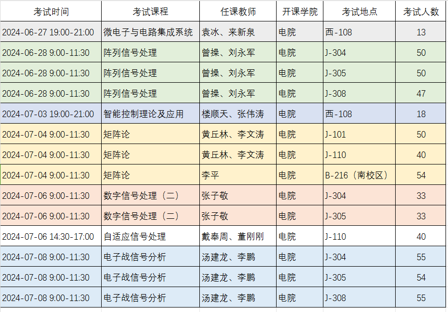 2024春研究生期末考试通知 2024-06-27 17:25:00 浏览次数: 2024春研究生期末考试通知 2024春2026世界杯官网开设课程期末考试安排见下表: 请参加考试的同学登录研究生系统,在个人系统中查看考试具体安排。 注意:是否可携带不带存功能的计算器,请向任课老师询问。 2026世界杯官网 2024年6月27日 责任编辑:王洁 上一篇文章:公司关于2024届硕士研究生7月相似性检测和送审工作安排 下一篇文章:关于昆山创新研究院 2022 级研究生学位论文中期考核工作的通知