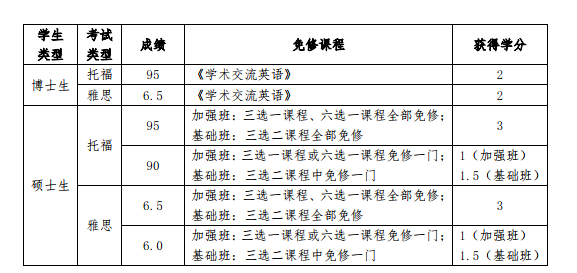 已成功申请了英语免修的博士研究生,博士英语课程《学术交流英语》(X0FL0014)免修免考,直接获得学分;不满足英语免修条件或者未申请英语免修的同学,直接制定培养计划,学习博士《学术交流英语》课程,通过考试获得学分。
