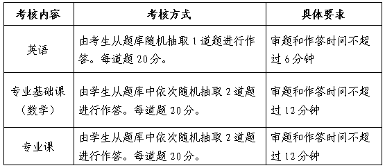 基础知识考核内容包括:英语、专业基础课(数学)、专业课三部分,考核范围为2020年公司博士招生简章复试笔试内容。该项考核总分100分,成绩达到50分及以上视为基础知识考核环节合格,考核合格考生方有资格进入后续综合面试。