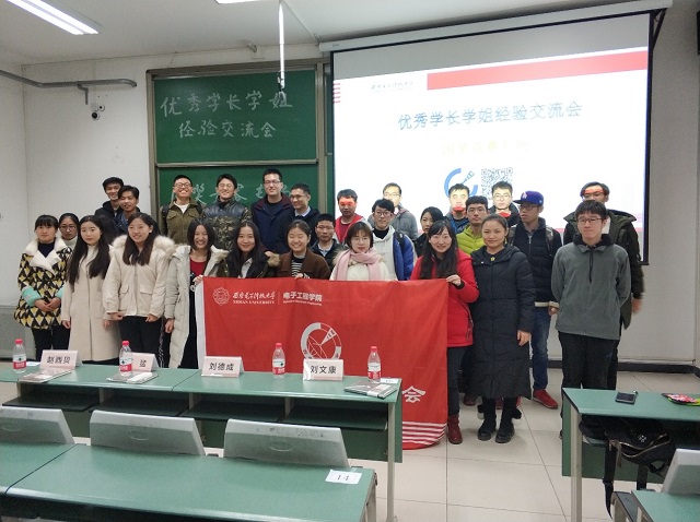 李德博、李强、蔡信岳、袁钻兴、李宁、方凌学长主要就专业知识、简历制作、面试技巧、签约事项和各个职位所需的专业技能五个方面向大家作了汇报,分享了他们在找工作时的经验并向学弟学妹们提出准备建议。