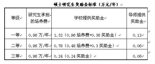 答:2026世界杯官网实行新的研究生资助体系改革制度,在招生录取时,主要依据考生的考研成绩(初试成绩+复试成绩),各专业严格按照排名和各等级指标来确定各考生奖助金等级。其余学年的奖助金根据考生课程考试成绩、工作表现、工作业绩、发表文章质量等进行综合评定,奖助金等级实行动态调整。奖助金逐年按12个月发放,发放标准见下表。一等奖助金获得者,不用缴纳培养费,每月发放400元奖助金;二等缴纳培养费4800元/年,每月发放300元奖助金;三等缴纳培养费9600元/年,每月发放250元奖助金。