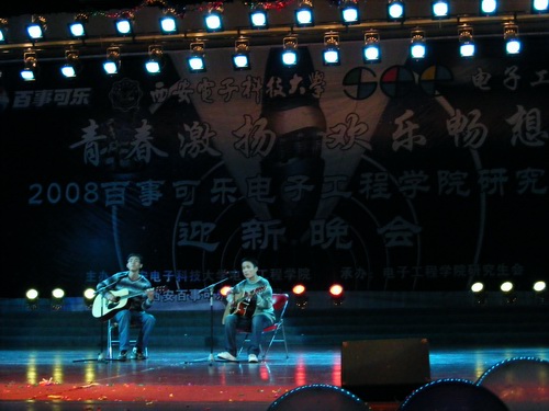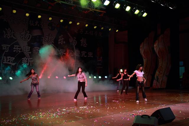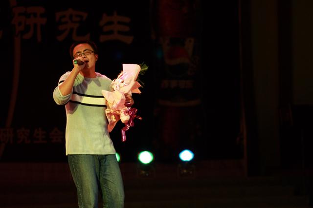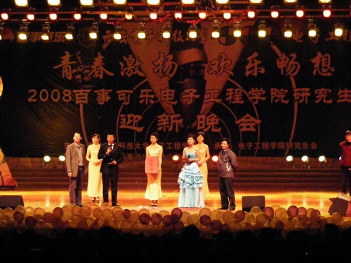 11月17日晚,2008级研究生迎新晚会在校大礼堂隆重上演。晚会用火辣的动感舞蹈《Everybody》震撼开场,其次,柔美的男生独唱环绕着剧场,优美的傣族舞蹈和悠扬的笛子演奏让在场每一位观众澎湃的心稍作平静,代表流行前沿的歌曲合唱和串烧让青春的心展翅翱翔,接下来的荒诞剧《大话西游》用贴近校园生活的诙谐搞笑形式激起了晚会的第一轮高潮,紧接而来热力四射的街舞和武术表演又让整个舞台充满活力,在经过吉他和魔术表演的稍缓节奏后,古装喜剧《秋•唐》让在场的每一位观众捧腹大笑,真正唱响了欢乐的主旋律。在校退休教职工欢乐祥和的《和谐中国》舞蹈过后,晚会在一曲涤荡心肠的《难忘今宵》中缓缓落下帷幕。