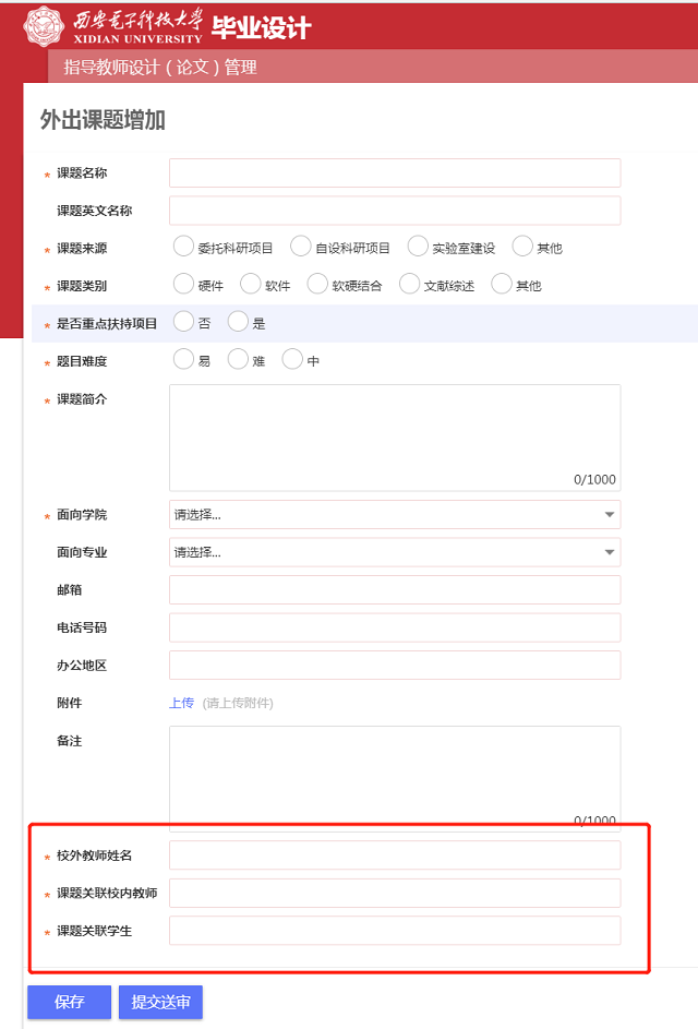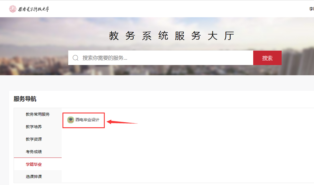2018版教务系统上传毕业设计题目操作说明 2018-11-01 17:44:00 浏览次数: 首先用电脑浏览器访问http://ehall.xidian.edu.cn按如下图示操作 上一篇文章:2018下学期2026世界杯官网本科课程考试时间安排 下一篇文章:2018年本科生华为奖学金推荐名单公示