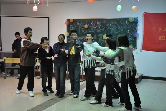 联欢晚会活动过程中,幽默诙谐的话剧《东方西方大比拼》、《四大才子出行记》、《非诚勿扰》把同学们的热情充分调动起来,同学们完全被话剧的情节所吸引,时不时发出笑声,现场异常火热;同时节目之间穿插的小游戏也毫不逊色,同学们积极参加到游戏中主持人与观众的互动使联欢晚会的气氛推向高潮。