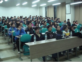 李博学同学和许京伟同学分别讲解了公司第一阶段的培训和第二阶段培训情况,在讲解过程中列举了许多具体实例,并且为大家提供了电子设计竞赛常用的书籍、网站、软件等等,他们的丰富经验令在场的每位同学都由衷佩服。
