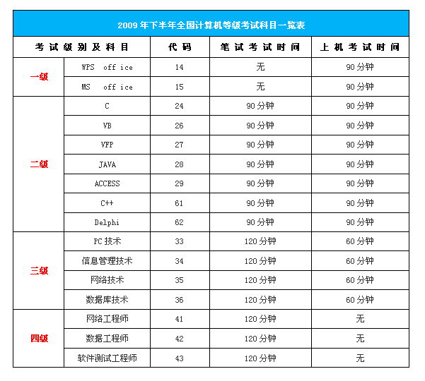 2009年6月第30次全国计算机等级考试报名工作已经开始,具体安排如下: