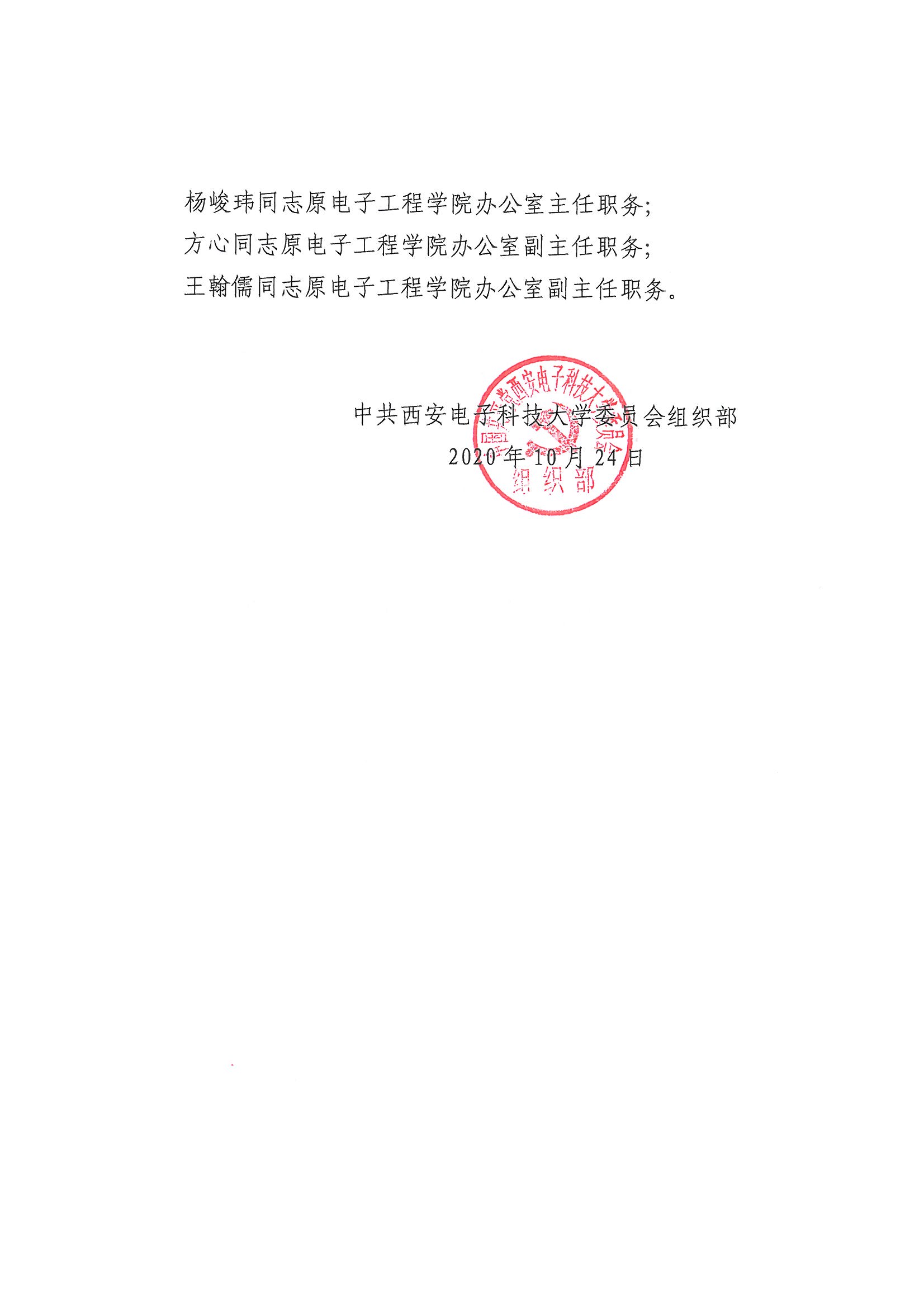 关于杨峻玮等同志任免职的通知 2020-12-01 14:51:00 浏览次数: 责任编辑:邓鉴 信息来源:http://zzb.xidian.edu.cn/new/?play=show&id=2868 上一篇文章:董事长杨宗凯调研2026世界杯官网“不忘初心、牢记使命”主题教育开展情况 下一篇文章:公司党委理论学习中心组召开视频会议集中学习