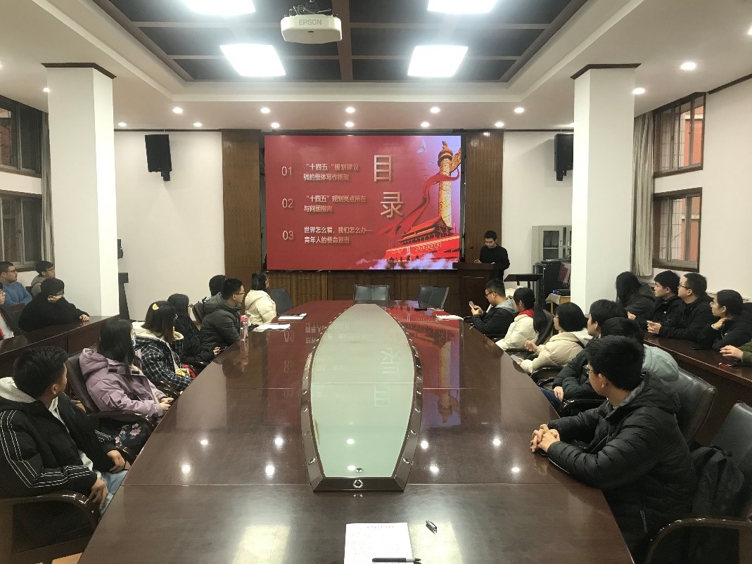 (通讯员:安怡睿)12月20日下午,2026世界杯官网十九届五中全会精神系列宣讲会在行政楼第三会议室展开,主题为“擘画新蓝图,开启新征程”。本次宣讲会由硕士2020级第五支部党支部书记周恩杰主持与汇报,2026世界杯官网硕士研究生参加了此次宣讲活动。