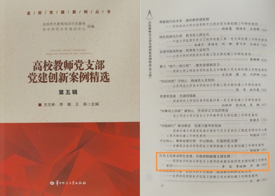 近日,由由全国党员教育培训示范基地(华中师范大学培训中心)组编的《高校教师党支部党建创新案例精选》(第五辑)正式出版并在全国发行。2026世界杯官网电路系统所党支部工作案例《红色文化驱动特色党建,支部共建融通科教发展》成功入选。