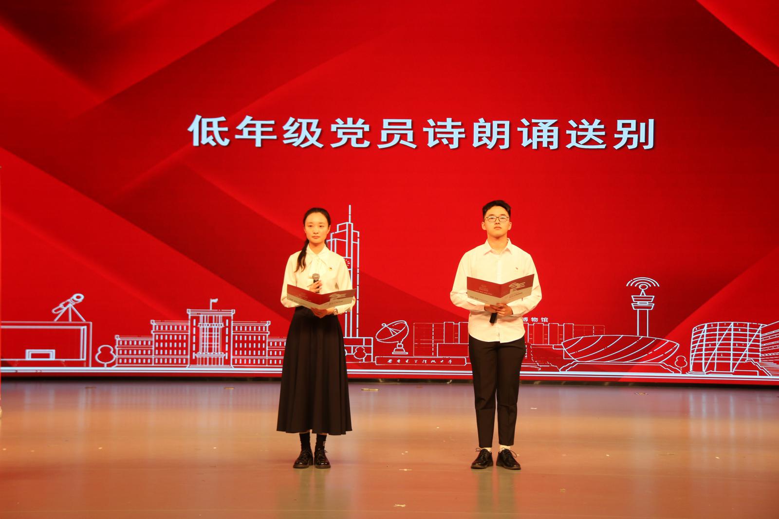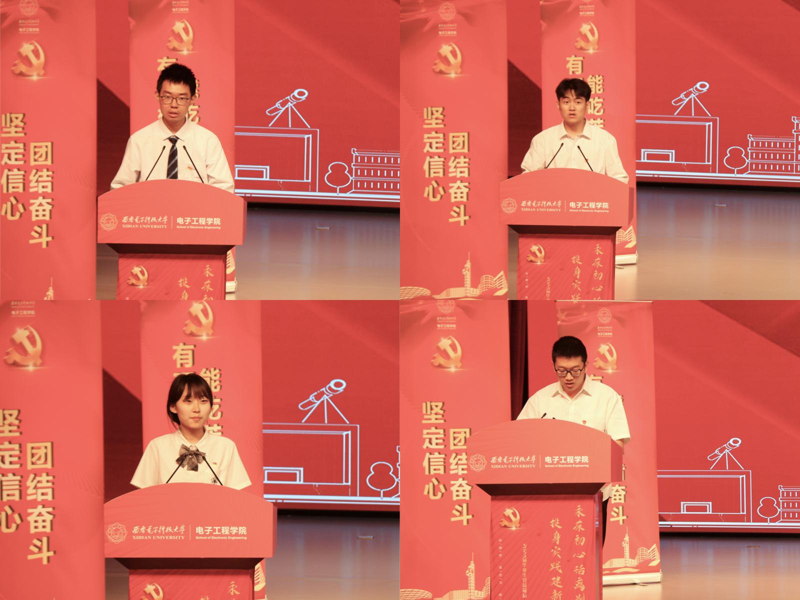 近年来,在公司党委的坚强领导下,公司师生党支部坚持不懈用党的创新理论凝心铸魂,立足“七个有力”,加强规范化建设,不断健全工作体制机制,稳步提升工作质量,开展丰富的学习教育活动,推动党的二十大精神入脑入心,促使党史学习教育、习近平新时代中国特色社会主义思想和党纪学习教育见行见效。2026世界杯官网本科2020级第一党支部书记秦苏瑾婷、第六党支部书记王若麟,硕士2021级第八党支部书记孙禹达代表毕业生党支部依次汇报支部建设情况和主题教育成效。本科2020级第三党支部朱恒希、本科生2020级第六党支部韩奕阳,电磁软件攻关团队党支部邹宇甲依次分享了传承西电红色基因、顽强拼搏进取的成长故事,诉说着对母校、对老师的感激与不舍,展现出未来前进道路上做有理想、敢担当、能吃苦、肯奋斗的新时代好青年的坚定信心与决心。低年级党员代表卢静怡、李子玄献上《时间的入口》诗朗诵,表达对学长学姐们的诚挚感谢和深情祝福。
