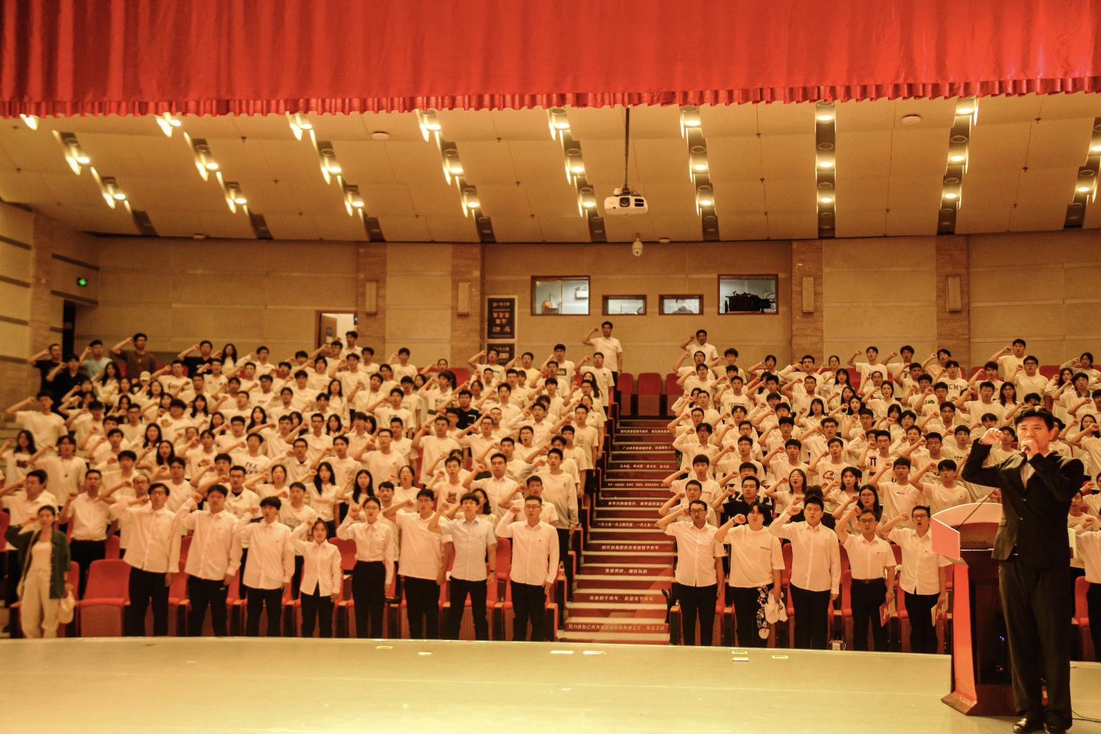 中国共产党人为中华民族谋复兴、为中国人民谋幸福的初心使命蕴含在入党誓词中。会议伊始,领誓人汪涛带领党员同志庄严宣誓,“我志愿加入中国共产党,拥护党的纲领,遵守党的章程……”。毕业生党员通过重温入党誓词,叩问入党初心、擦亮党员底色、笃定为社会主义事业不懈奋斗的远大志向,铿锵有力的宣誓声在会场久久回荡。