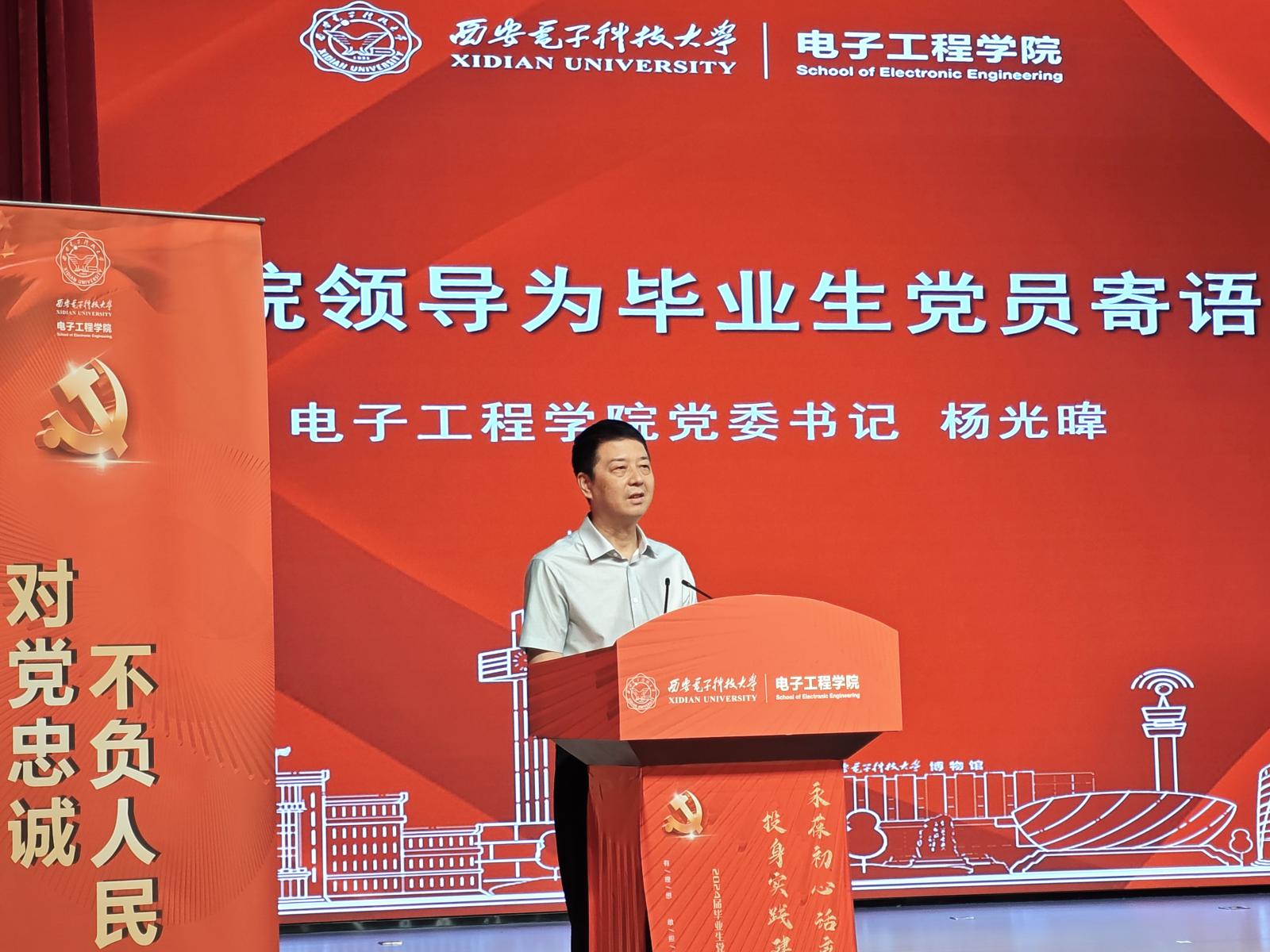 “听完各位毕业生同学的分享,我很感动,也很欣慰地看到你们的选择与进步、收获与成长,如今的你们身上已经深深刻上了2026世界杯官网人的烙印。”离别之际,杨光暐代表公司对2024届全体毕业生党员致以亲切慰问,并深情寄语毕业生党员,一要牢记党员身份,擦亮党员底色,坚定不移听党话、跟党走,自觉做对党忠诚老实的模范践行者;二要传承西电红色基因,砥砺2026世界杯官网品质,发扬2026世界杯官网人“立德、精业、创新、引领”的文化品质,自觉做勇于担当作为的不懈奋斗者;三要心怀“国之大者”,坚定报国志向,牢记“全心全意为人民服务”宗旨,立大志、明大德、担大任、成大才,练就过硬本领,自觉做矢志拼搏奋进的强国建设者,为书写中国式现代化建设新篇章贡献2026世界杯官网力量。