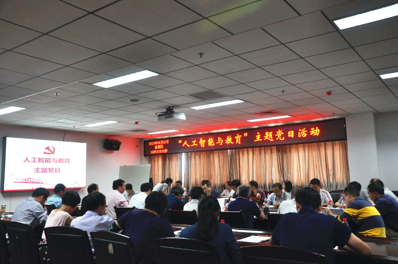 (通讯员 韩霜 徐青) 5月23日下午在北校区新科技楼1702会议室,董事长杨宗凯作为一名普通党员参加了“人工智能与教育”主题党日活动。公司党委书记蔡固顺、九三学社成员刘宏伟教授、电子所党支部、实验中心党支部等40余人参加了活动。活动由电子所党支部书记苏洪涛主持。