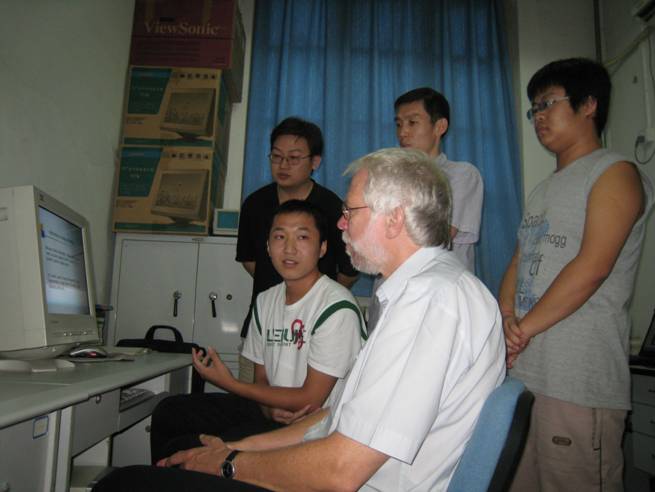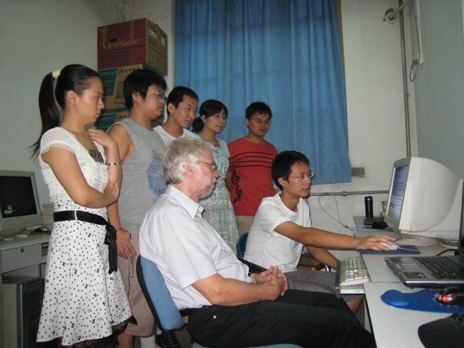 Manfred教授与研究生孟捷讨论多方向小波在遥感信息处理方面的应用