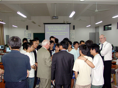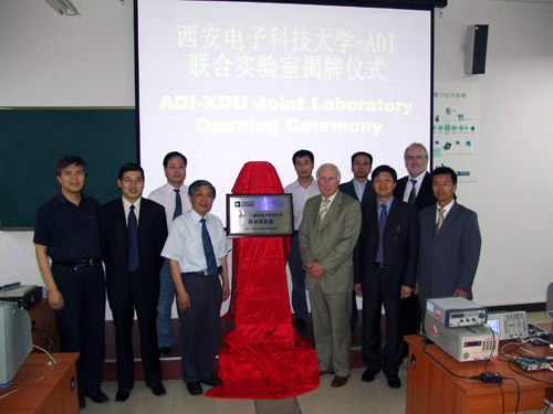 会谈结束后,双方进行了“西电—ADI联合实验室”揭牌仪式,揭牌仪式由公司国际合作与交流处高新波处长主持,陈平副董事长、Ray Stata主席分别发表了讲话,并参观了联合实验室。此外,代表团一行还参观了电磁场与微波技术等实验室及公司新校区。新校区先进的教学设施、舒适的生活环境以及高水平的建设速度给ADI的客人们留下了深刻的印象。