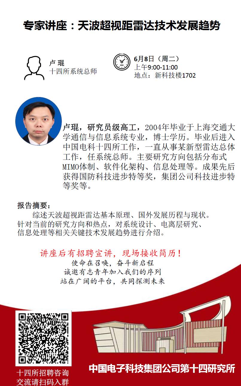 专家讲座:天波超视距雷达技术发展趋势 2021-06-04 16:33:00 浏览次数: 责任编辑:邓鉴 上一篇文章:崔铁军院士专题报告会:电磁空间的表征和调控 下一篇文章:讲座报告:基站天线异频单元间的去耦技术