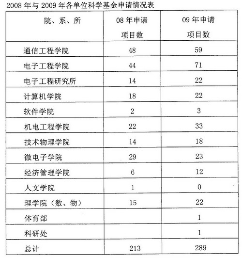 2009年公司国家自然科学基金项目申请数量获得大幅度增长 2009-06-07 15:37:00 浏览次数: 2009年度受理期公司共申请国家自然科学基金项目289项,比去年同期增长35%。其中面上项目141项,青年基金项目129项,联合资助项目3项,专项基金项目l项,重点项目8项、重大项目l项,杰出青年基金4项,海外及港澳学者合作研究基金项目l项,重大国际合作与交流项目1项。 来源:科研处 科研工作简报 2008西电国家自然科学技术基金项目获批清单 (非官方信息,仅供参考) 上一篇文章:GFKGJ领导来公司雷达、天线重点实验室进行工作调研 下一篇文章:公司王彤、公茂果入选新世纪优秀人才支持计划