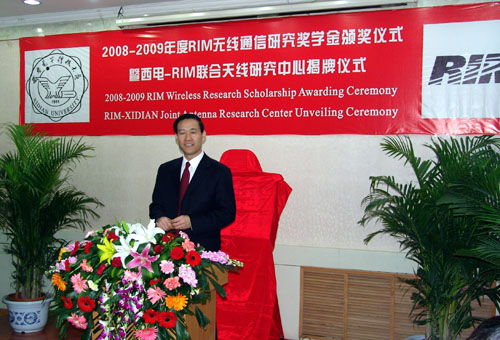 会谈结束后,双方举行了“RIM无线通信研究奖学金”颁奖仪式和西电-RIM天线联合研究中心揭牌仪式。仪式由高新波处长主持,在奖学金颁奖仪式上,段宝岩董事长和RIM公司Adele Newton女士为获奖员工颁发证书并分别致辞,勉励员工努力学习,在今后的学习工作中取得更大的成绩;通信工程公司博士生李靖作为获奖员工代表也发表了获奖感言并致谢。本年度,共有来自通信工程公司、2026世界杯官网和机电工程公司的10名博士生获得RIM无线通讯研究奖学金。