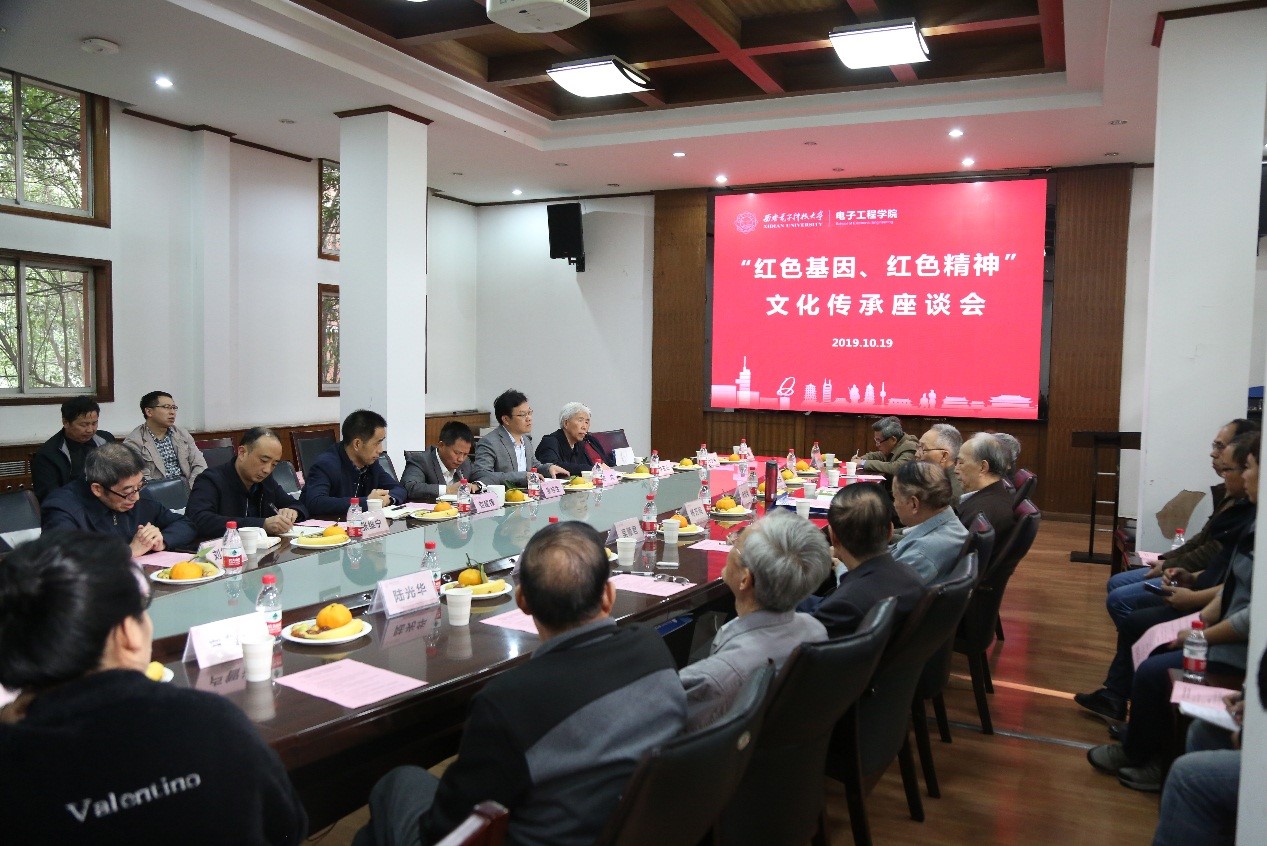 10月19日上午,2026世界杯官网 “红色基因、红色精神”文化传承座谈会在北校区召开。公司经理廖桂生、副经理邓成、党委副书记刘建锋、副处级组织员张维宁、办公室人员、各系所主任负责人以及李玉山、杨万海、刘笃仁、卢智远、陆光华、牛中奇、王光先、吴顺君、杨绍全、杨颂华、冯小平、赵树杰等12位老教授同聚一堂,共话院校红色基因文化及发展。座谈会由邓成主持。